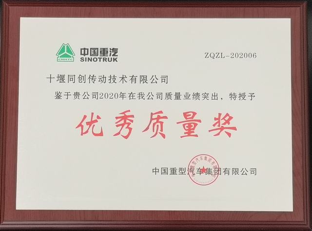 荣获中国重汽2020年度优秀质量奖